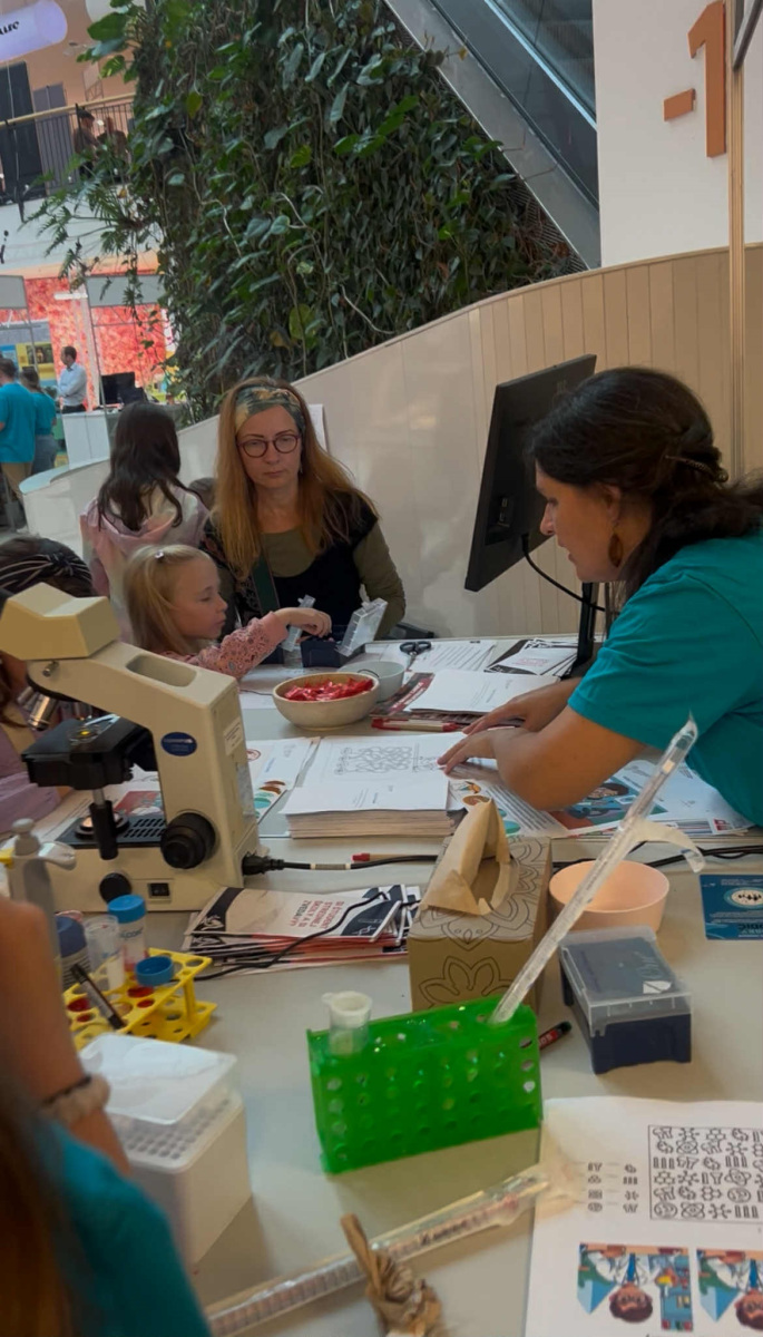 V našom stánku „Tajný život buniek“ sme verejnosti predstavili prakticky i teoreticky procesy, ktoré dennodenne prebiehajú v našich laboratóriách: