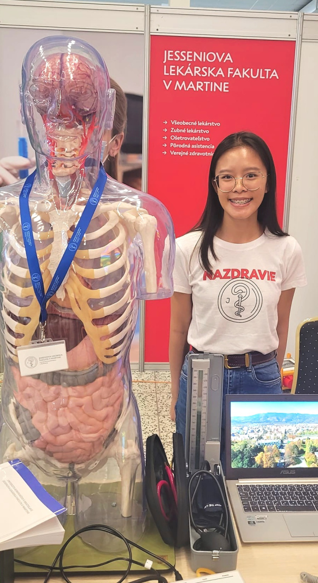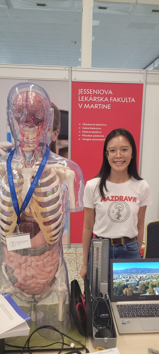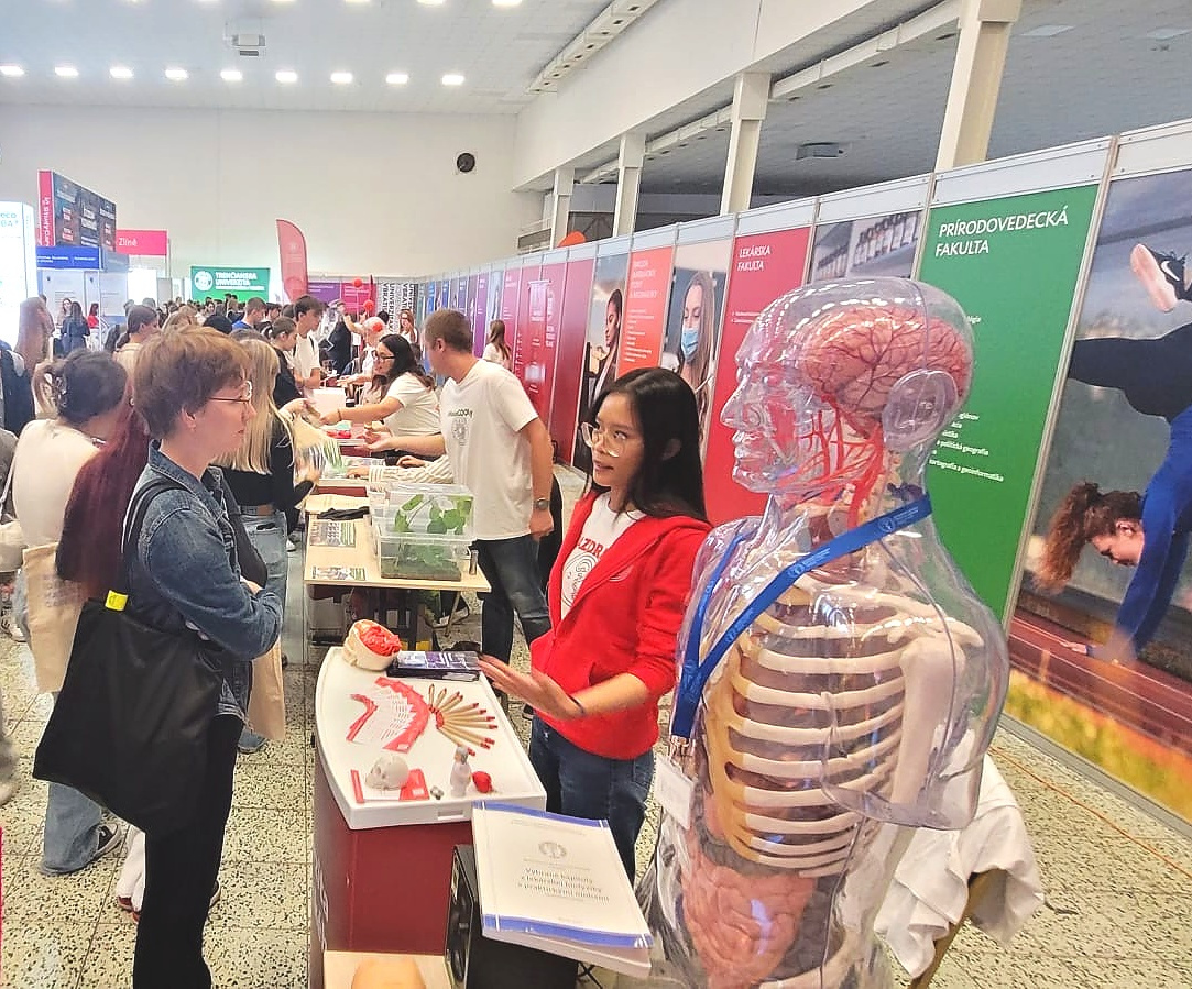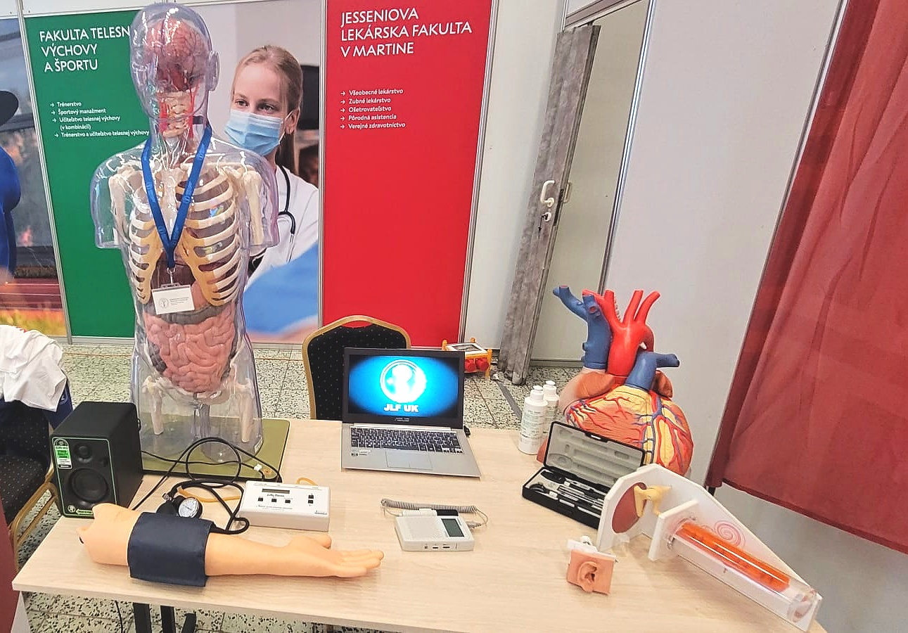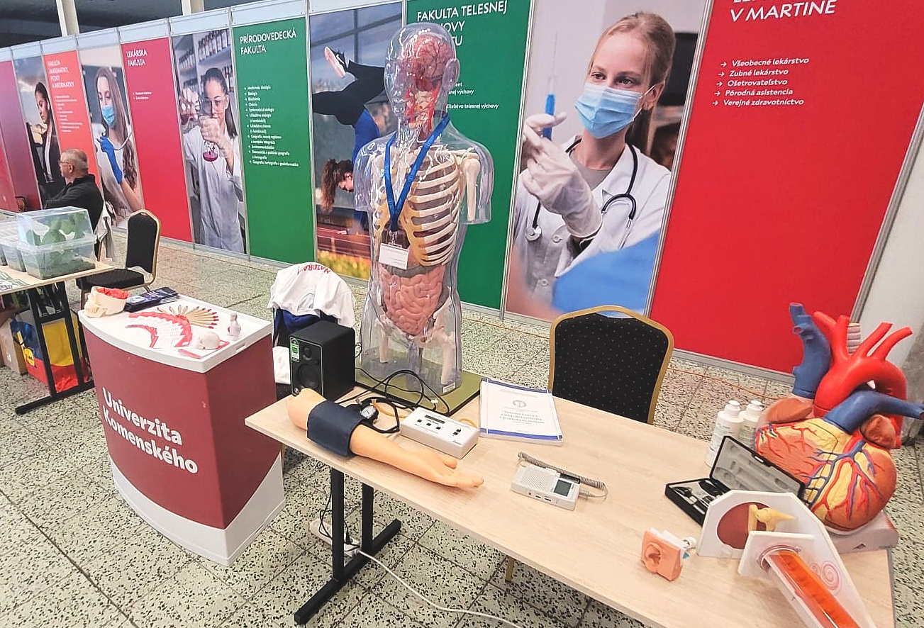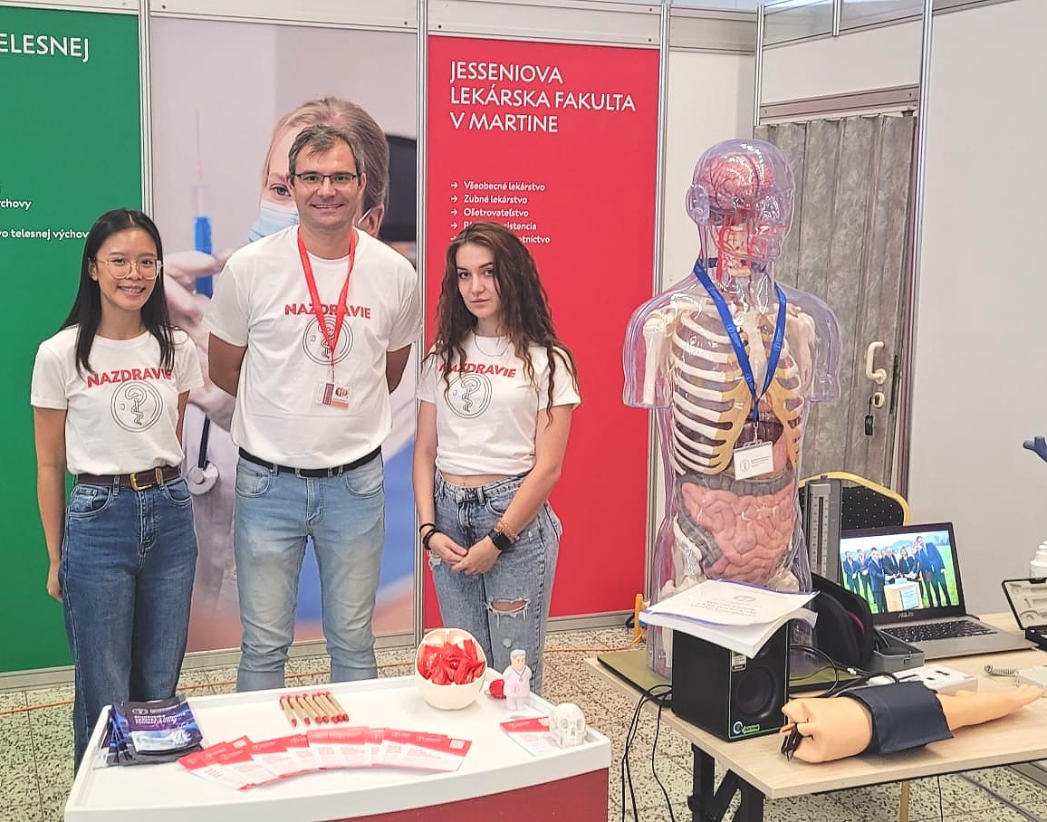 Vo fakultnom stánku v priestoroch výstaviska Agrokomplex zastupovali JLF UK študentky všeobecného lekárstva – Lucia Mikušová a Hanka Nguyen spoločne s doc. RNDr. Michalom Šimerom, PhD., vedúcim Ústavu lekárskej biofyziky, ktorý pripravil aktivity v rámci Vedy pre život.