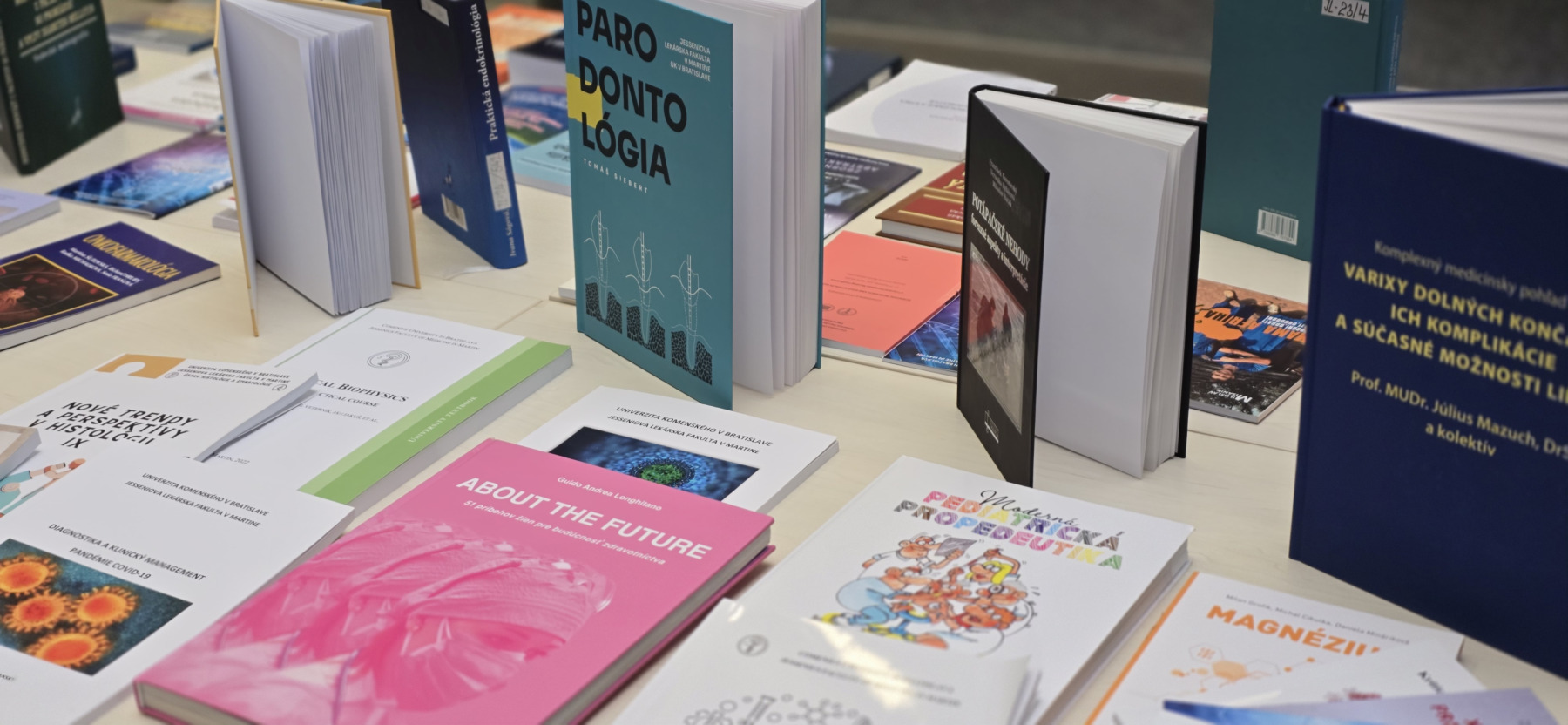 Na výstave prác zamestnancov JLF UK a UNM tento rok svoju tvorbu prezentovali profesorka Janka Buchancová (Medicína a štetec), MUDr. Alena Škutchanová a Hana Kušnierová (Metamorfózy). Odprezentované boli aj knižničné publikácie v rámci vedecko-výskumnej a pedagogickej činnosti fakulty.